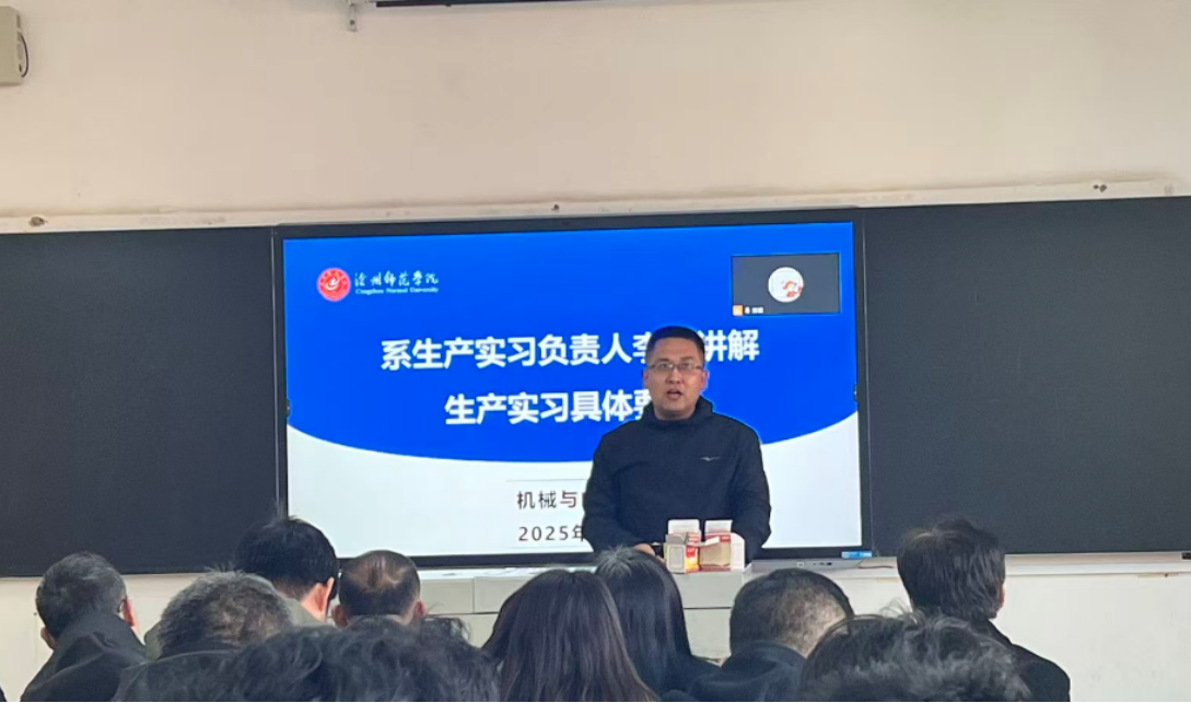 为组织落实好2026届毕业生生产实习工作,确保生产实习顺利进行并取得实效,11月11日下午,机械与电气工程系隆重召开2026届毕业生生产实习动员大会。系主任鲁明珠主持会议,党总支书记陈秀才、系副主任赵治月、李杰和生产实习指导教师、2026届毕业生参加了此次会议。